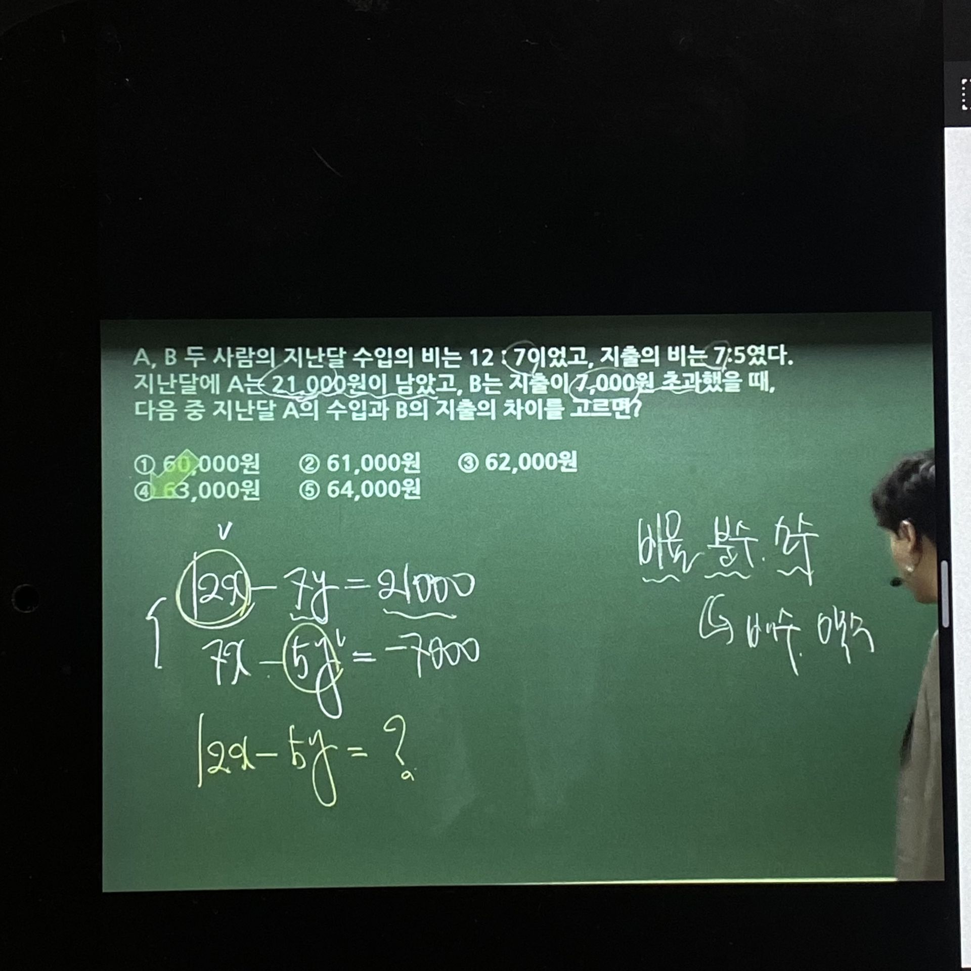 복잡한 수식을 세우지 않아도 답이 도출되는 과정을 보여주셔 문제접근 방식도 많이 배웠습니다~!