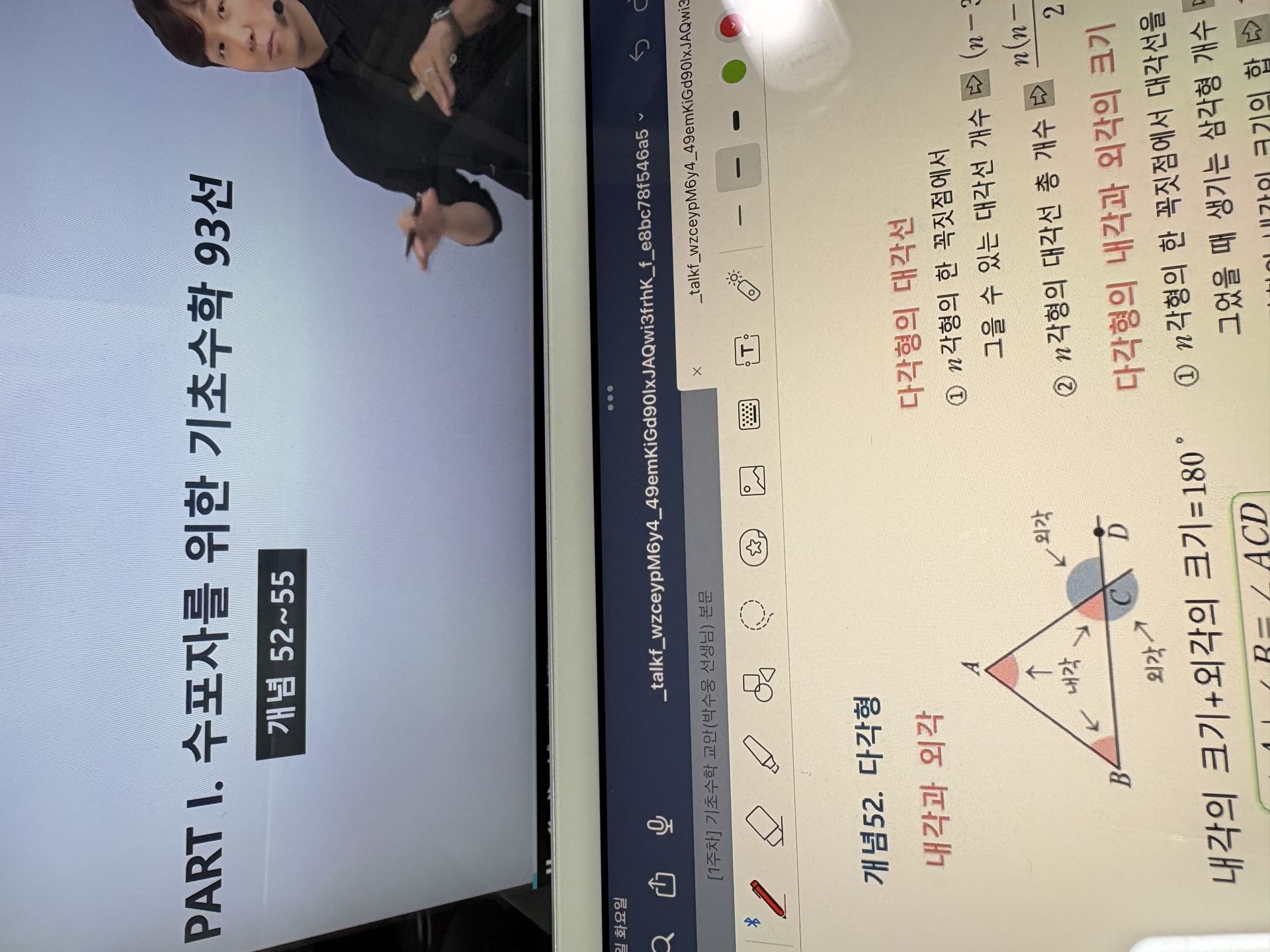 다시 풀어보라는 문제는 일시정지 하고 다시 풀어보았고 선생님 풀이법과 비교해보았습니다.