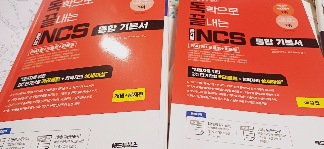 교재는 고등학교 수학의 정석 느낌이 납니다. 예제 문제 하나하나 잘 되어있고 기본문제+고난도문제까지 풀이가 정말 꼼꼼하게 적혀있습니다. 솔직히 교재가 진짜 좋은 것 같습니다.. 전에 타 교재로 한 일주일 끄적여 볼 기회가 있었는데 그건 답지에 풀이 1줄 끝인 문제가 많았거든요. 여긴 그런 문제가 아예 없습니다. 풀이가 기본 반 페이지예요. 물론 수리나 자원관리, 문제해결은 따로 500제 더 풀어봐야 풀이 속도가 붙겠지만, 애드투 기본서가 시중 기본서 교재들 중 가장 이론이 자세한 교재인 듯 합니다. 기본서 문제풀이만 3회독 중이고 응용수리 500제도 풀기 시작했습니다. 문제를 더더더 빨리 풀 수 있게 되면 좋겠네요. -