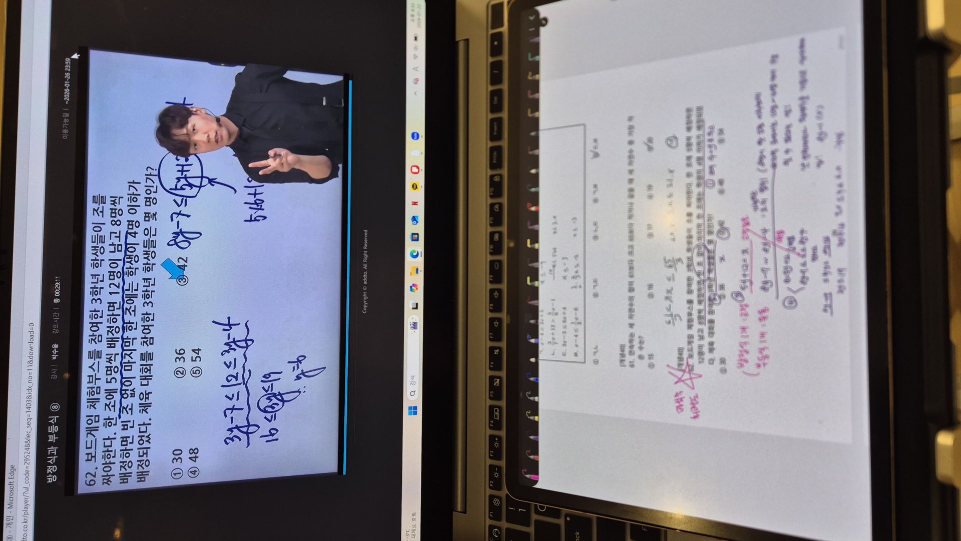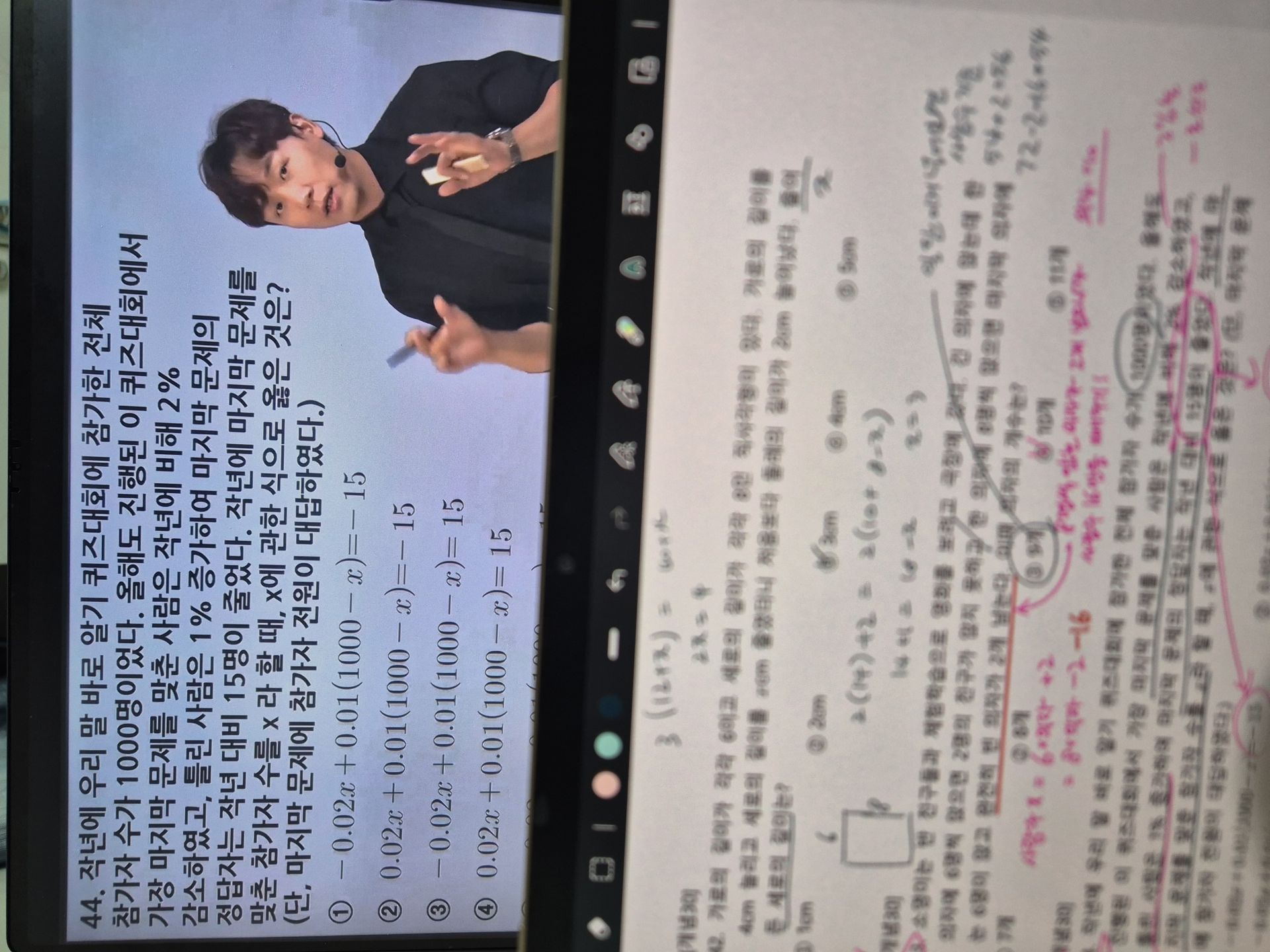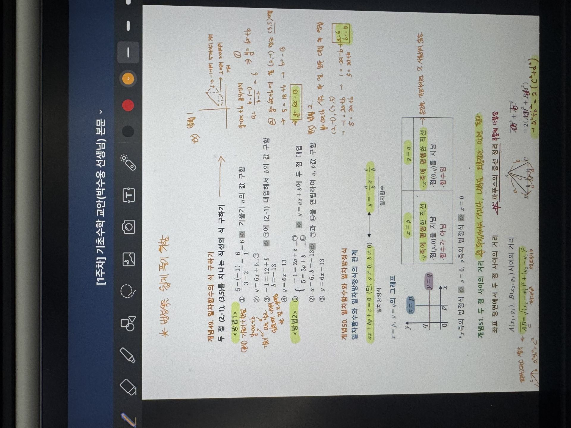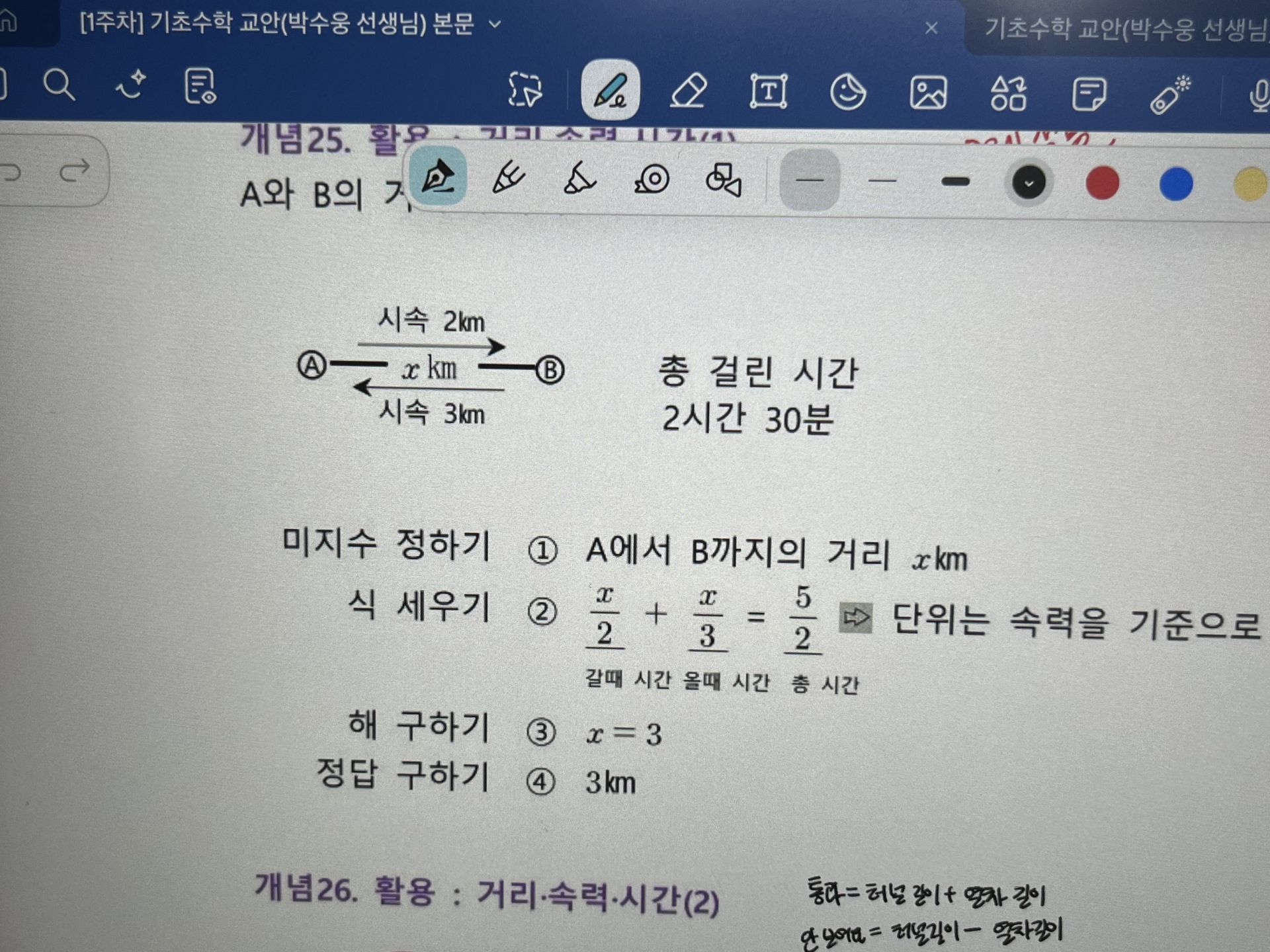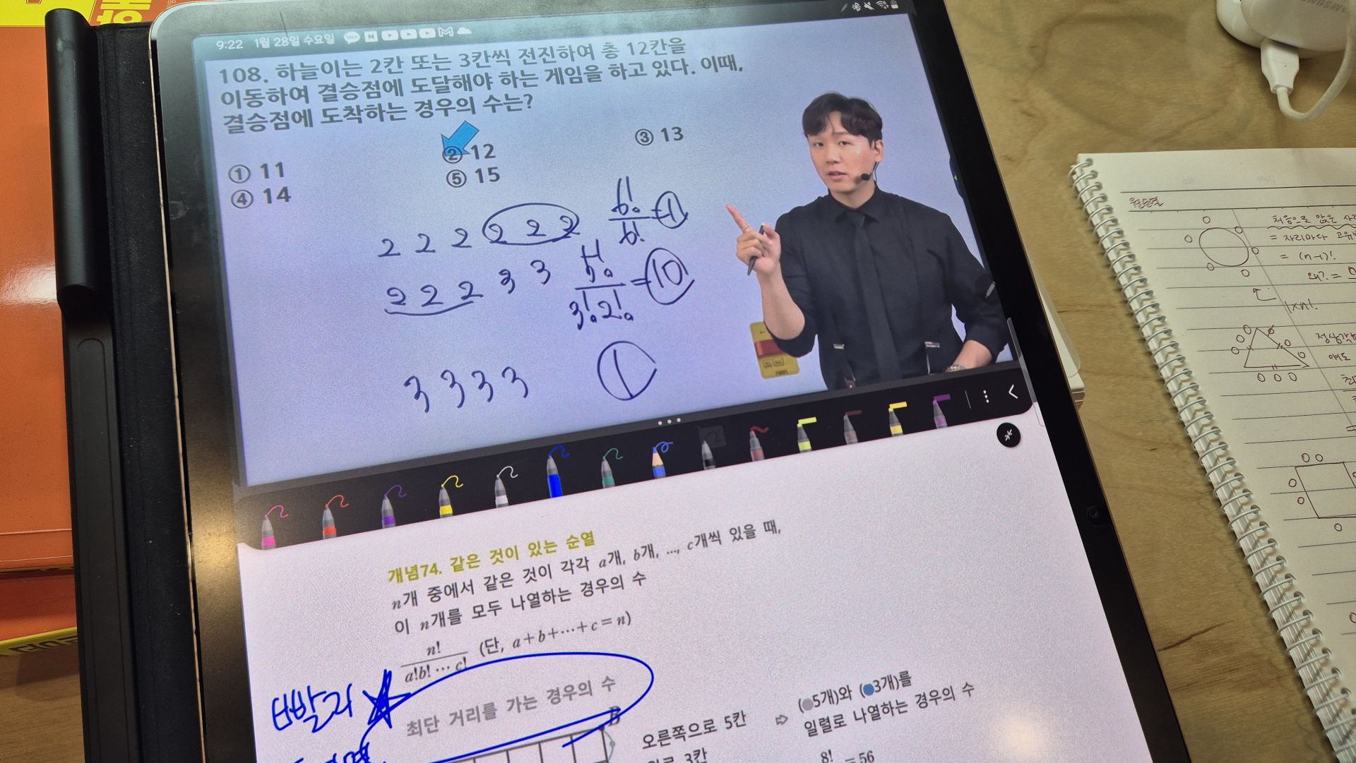 다시 풀어보라는 문제는 일시정지 하고 다시 풀어보았고 선생님 풀이법과 비교해보았습니다.