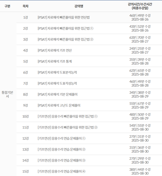 자료해석 파트의 시간 줄이는 것이 힘들어 기초 수학 개념들을 다시 정리하고자 신청했습니다.