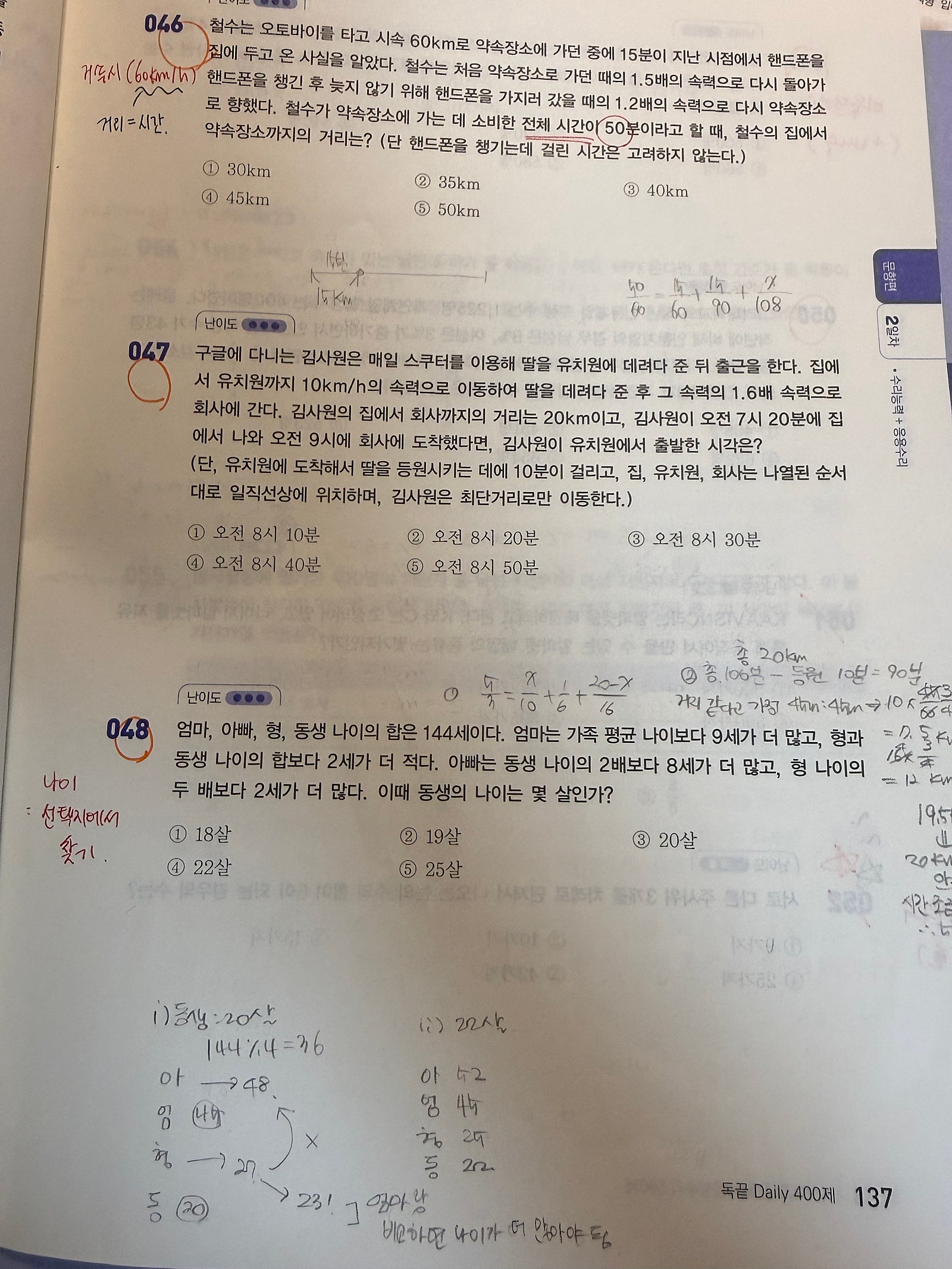 또 혼자서는 시도조차 어려웠던 터널 문제, 비율 문제 같은 개념들도