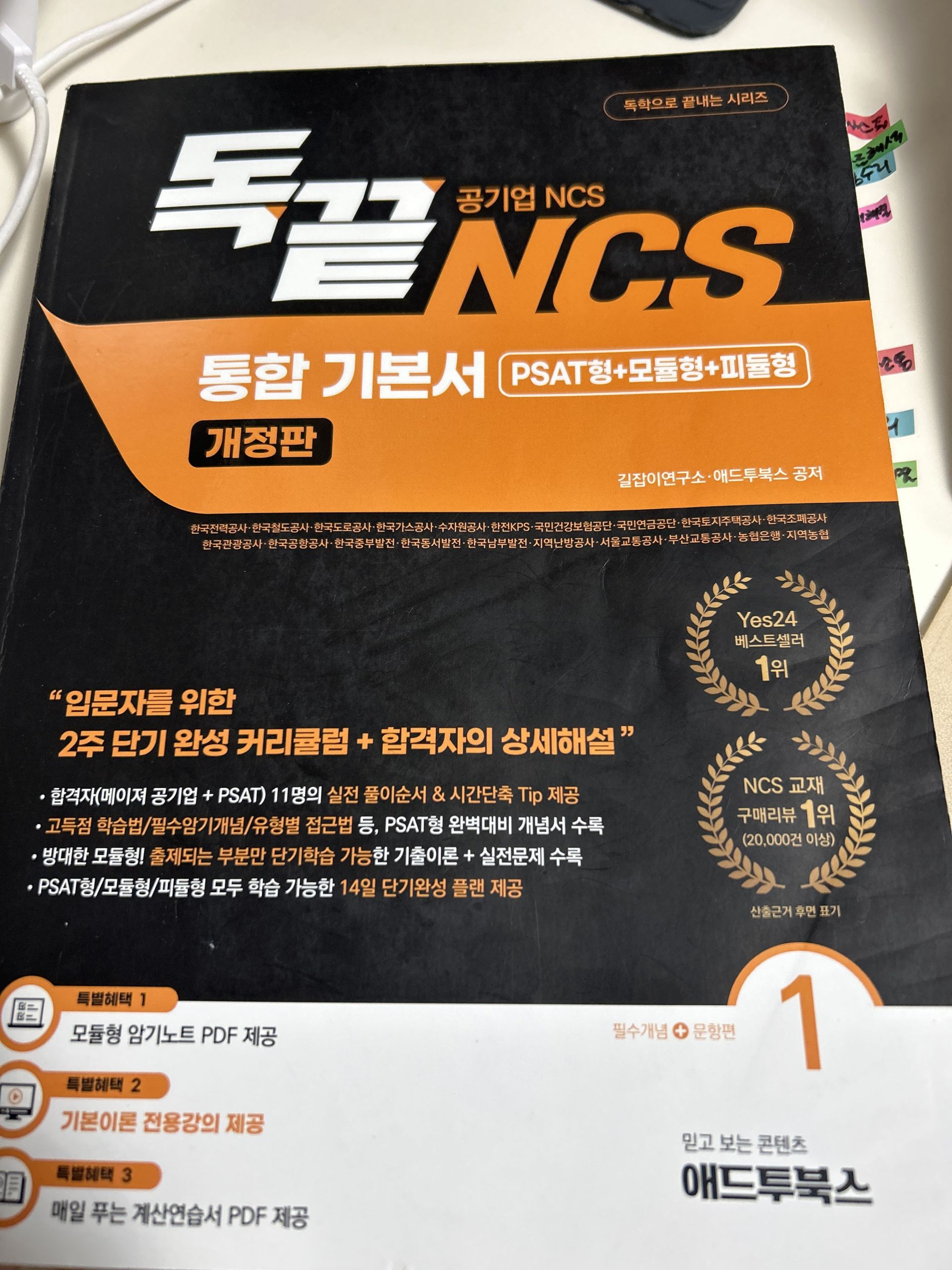 독끝 NCS 문제해결능력+자원관리능력을 사용해보고 좋아서 수리능력, 자료해석도 풀어봤다. 수많은 공겹 취준생들에게 혼자 독학하기에 정말 좋은 교재고 인강이라고하는데, 왜 그런지 지난번 문제해결능력+자원관리때도 느꼈지만 이번 수리능력, 자료해석 교재를 보면서도 또 느꼈다. 공기업 준비하는 독학러들에게 진짜 추천할만한 교재랑 인강이라고 생각된다. 공기업, PSAT 합격자의 NCS 문제풀이 시간단축 팁을 전체 문항에서 배울 수 있어 빠르게 답을 찾는 연습이 가능한 교재였다.