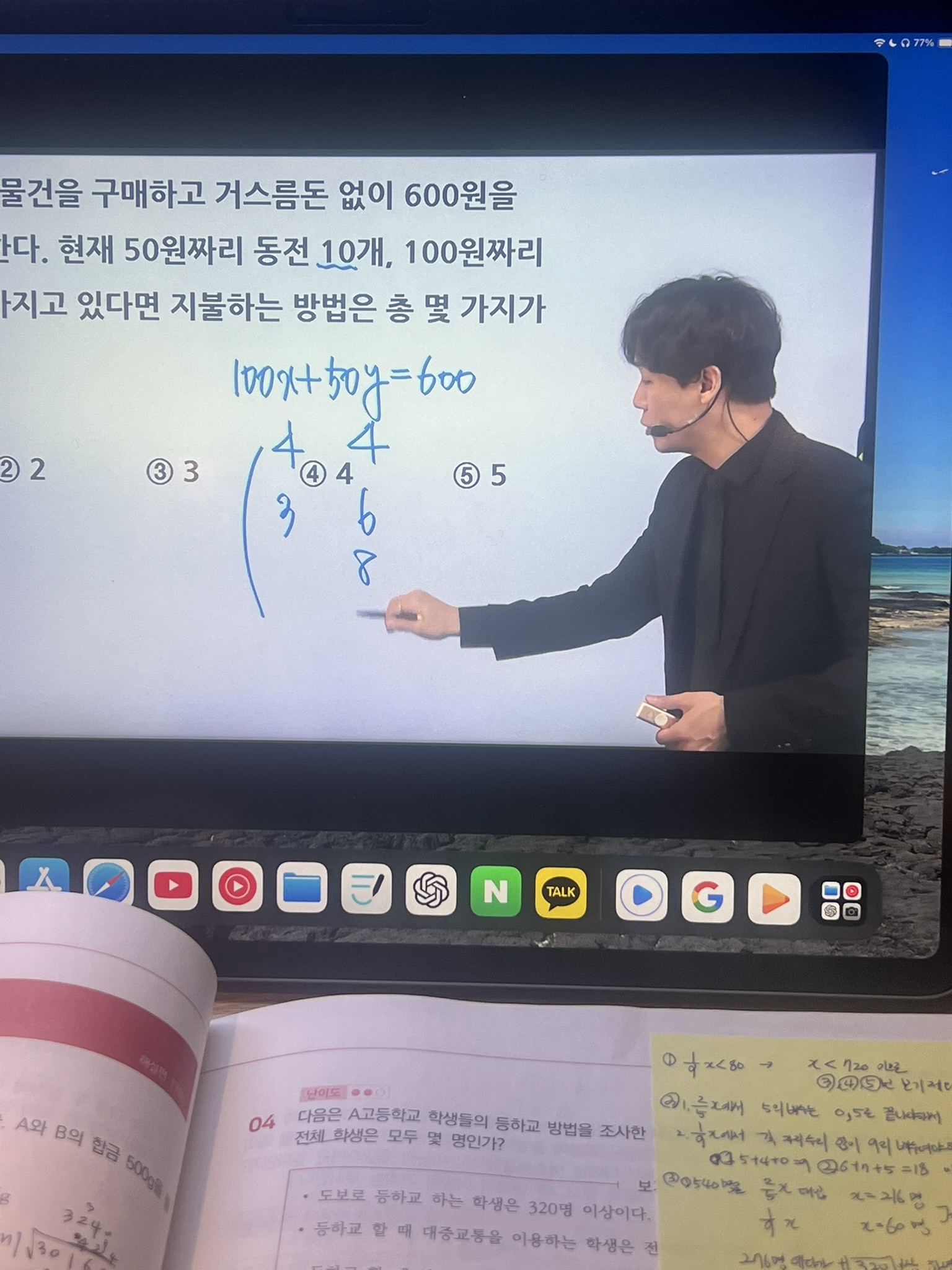 다시 풀어보라는 문제는 일시정지 하고 다시 풀어보았고 선생님 풀이법과 비교해보았습니다.