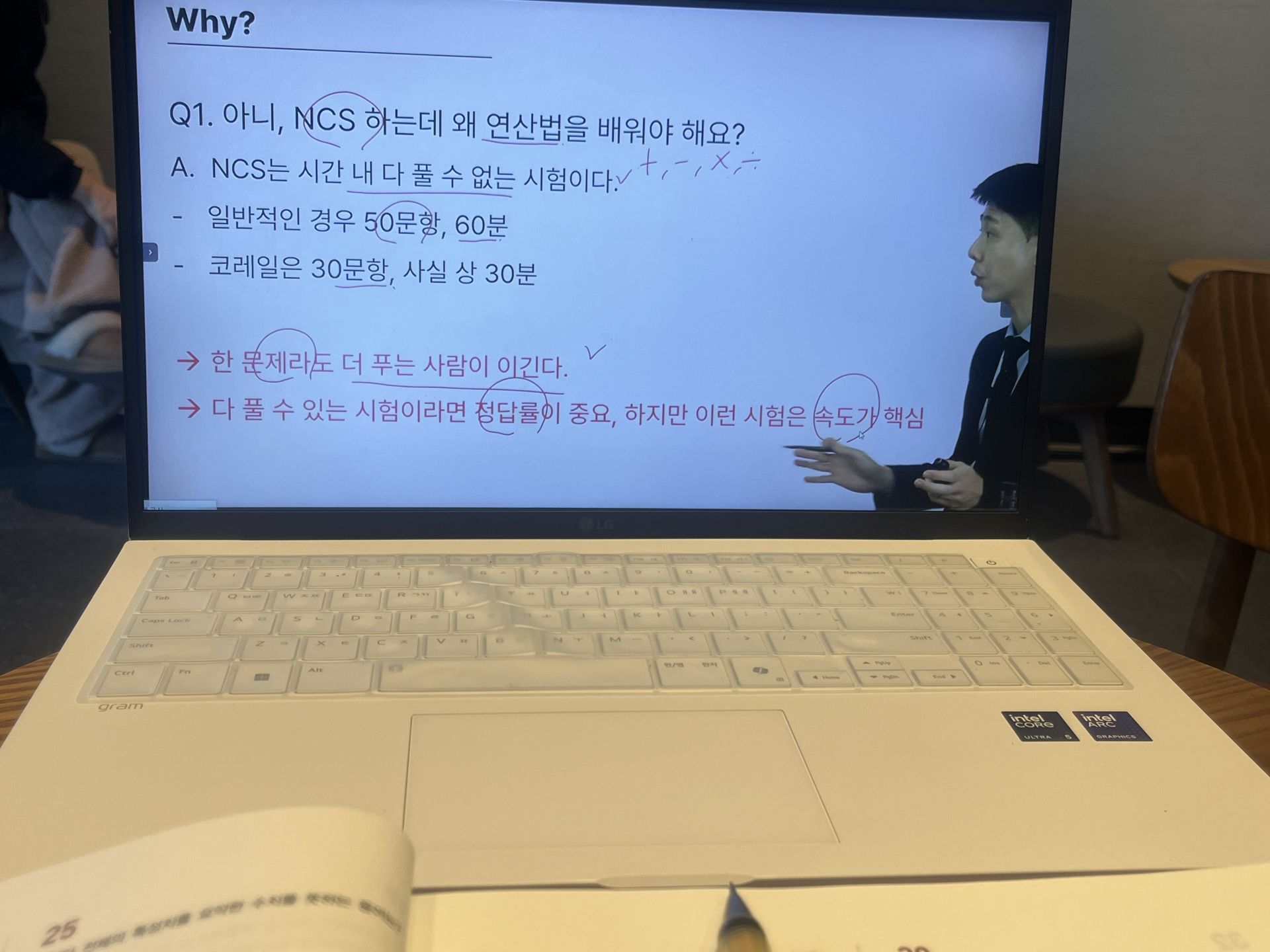 교재 또한 인강 내용과 잘 연계되어 있어 복습하기에 매우 좋았습니다. 유형별로 정리가 되어 있어 강의를 들은 뒤 바로 해당 유형 문제를 풀어볼 수 있었고, 풀이 과정을 다시 확인하며 스스로 부족한 부분을 점검하기에 적합했습니다. 저는 강의를 수강한 후 교재 문제를 풀면서, 강의에서 강조한 포인트를 체크하고 풀이 시간을 함께 기록하는 방식으로 공부하고 있습니다. 이를 통해 불필요하게 시간이 오래 걸리는 지점을 스스로 확인할 수 있었습니다.