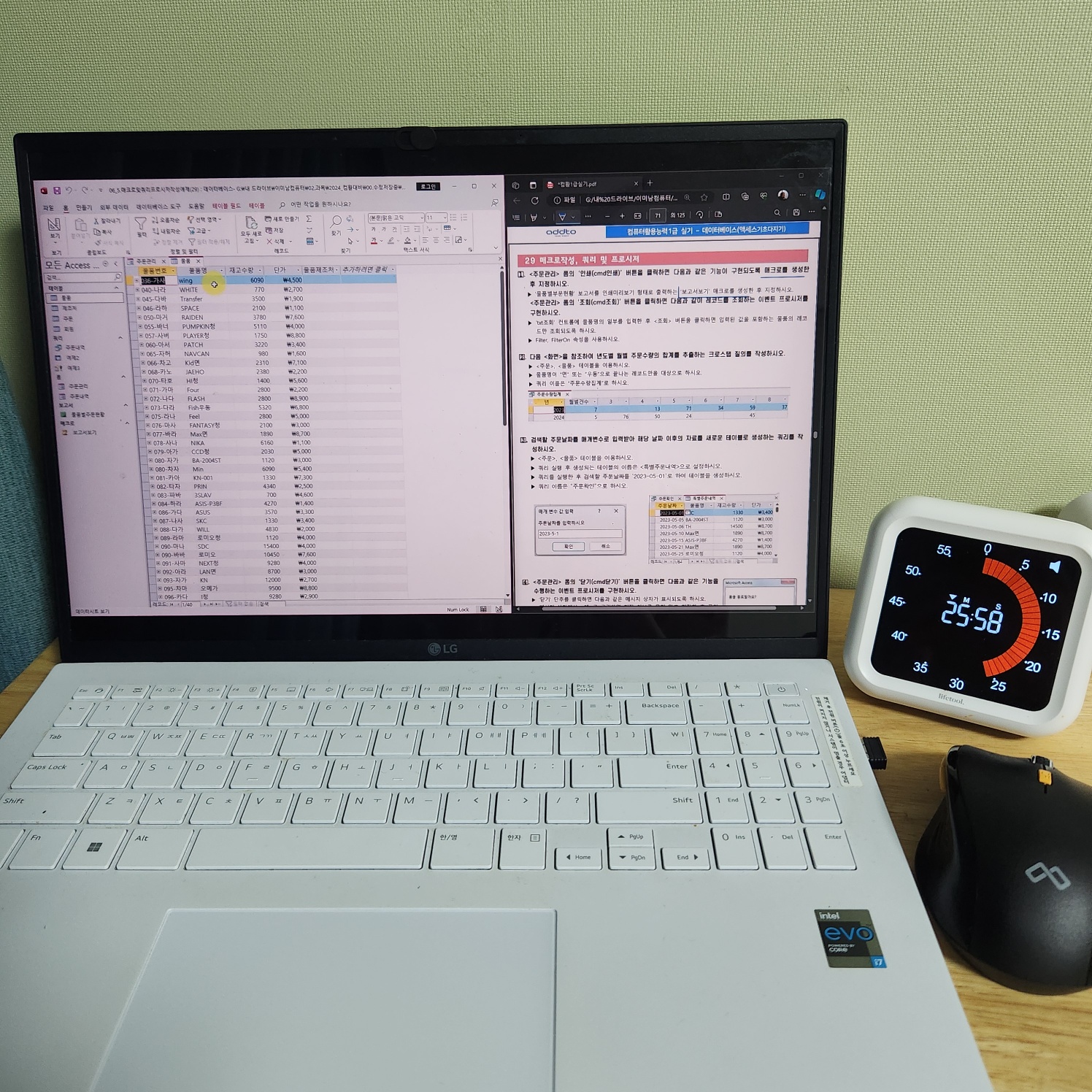 그동안 이미남 컴활 1급 인강으로 실기 전 범위를 따라오면서, 특히 액세스 흐름을 처음보다 훨씬 명확하게 이해하게 되었습니다.