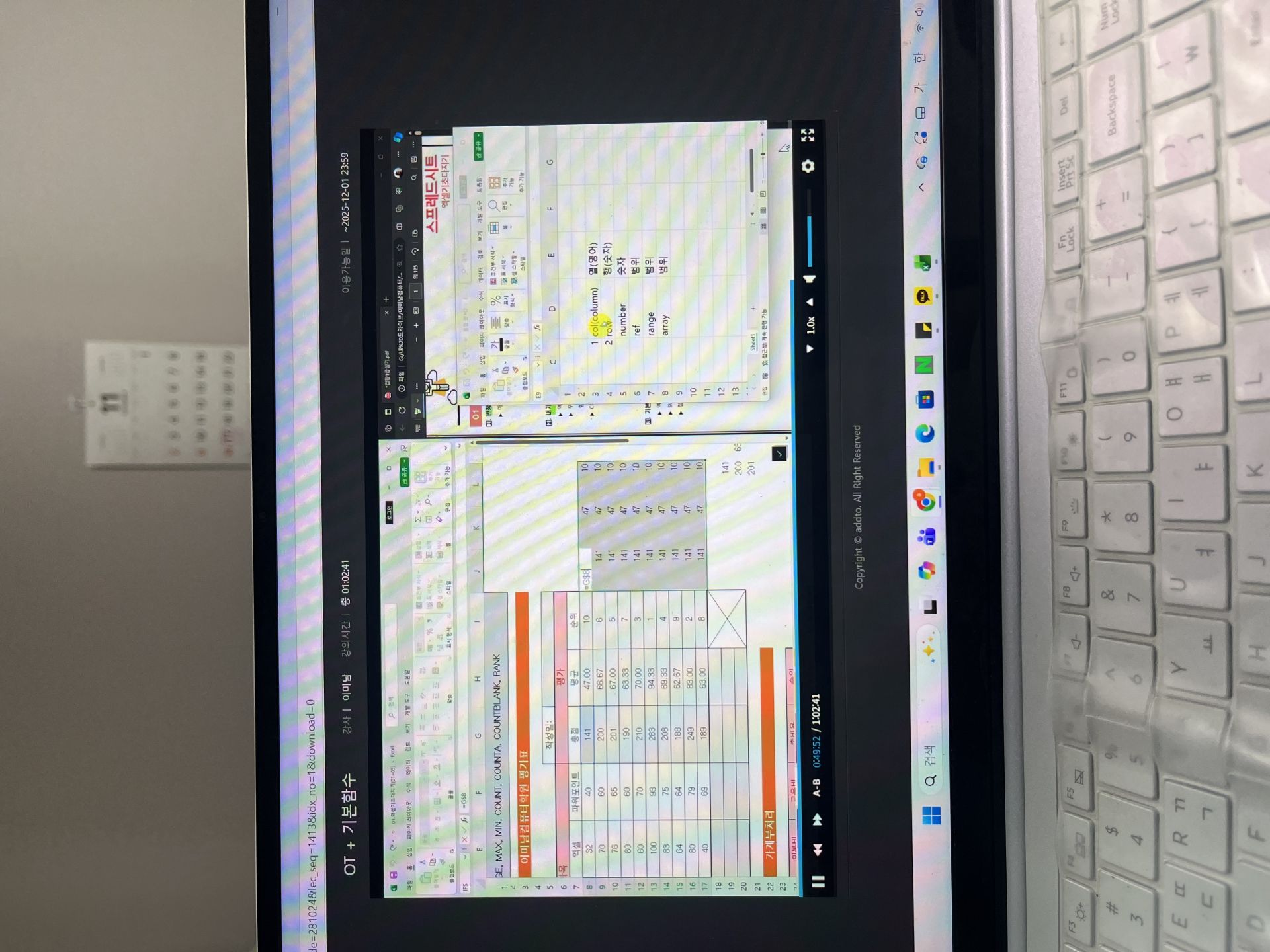 그래서인지 필기를 합격하고 독학으로 실기 준비하다보니 함수라는 거대한 벽에 막혀 미루고 미뤄 필기 합격 유예기간 15일 남기고 부랴부랴 "애드투 이미남 강사님의 컴활 2급 실기" 강의를 듣게 되었어요. (포기하기엔 필기 합격이 너무 아깝잖아요...ㅠ)