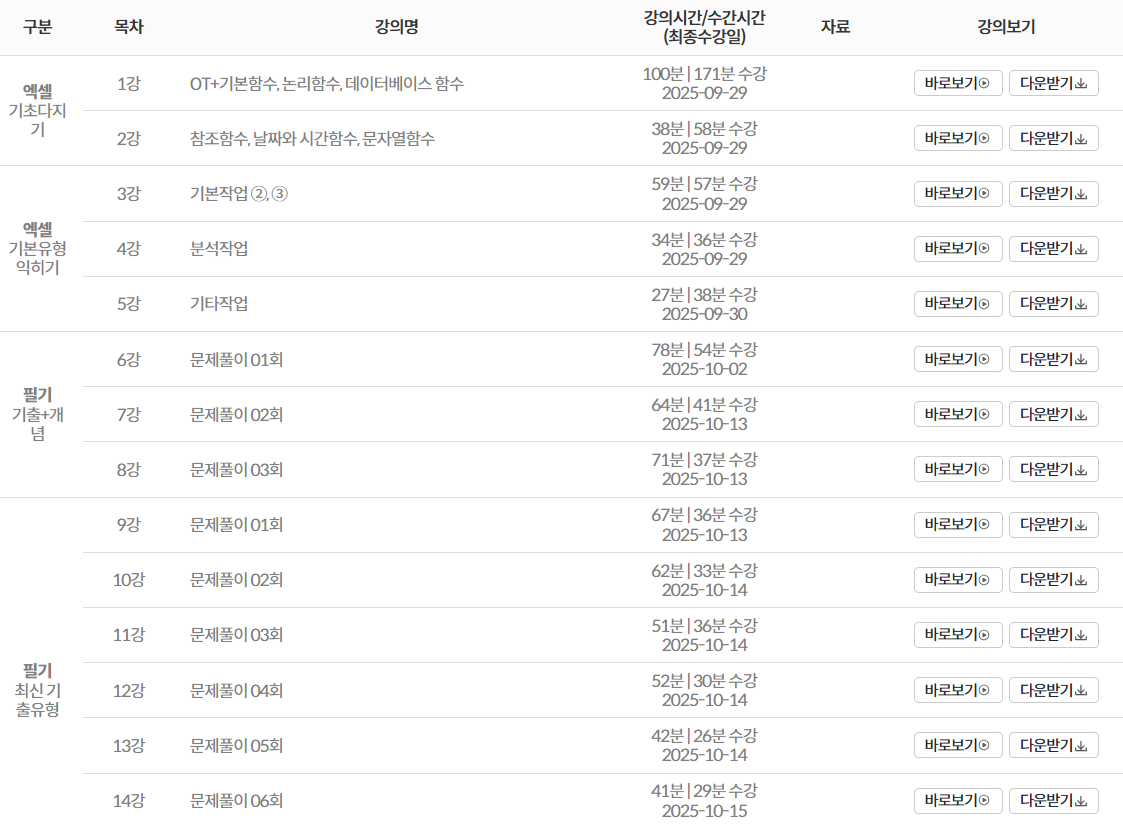최근 컴활 1급이 너무 다양한 문제가 나와서 바뀌는 시험 흐름을 파악하는 것에 도움이 되었습니다. 모든 컨텐츠를 성실하게 다 소화하면 무조건 합격 보장입니다.!