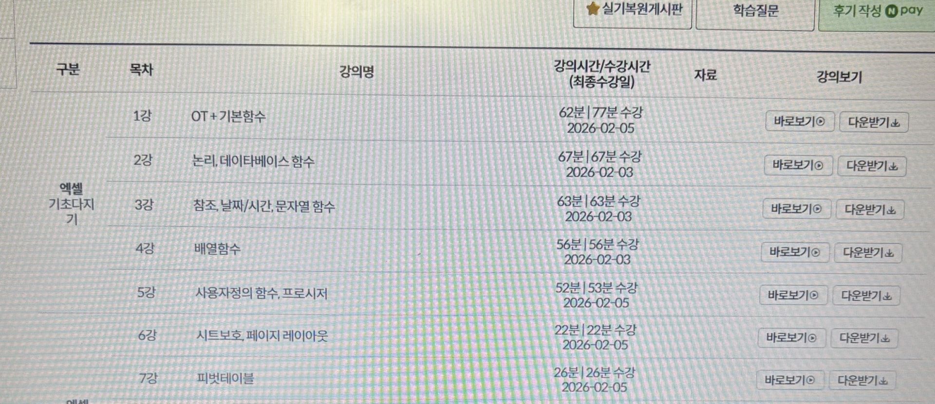전 엑셀 정말 아무것도 몰라서 수강하기 전까지는 걱정이 한가득이었는데 강의 들을 수 있는 기간도 넉넉하고 정지할 수있고, 온라인 교재 파일도 무료 배포해서 부담없이 공부를 시작할 수 있었어요~!